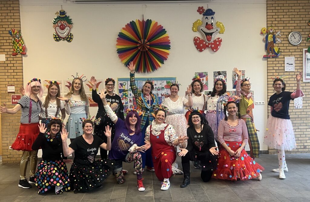 Auch in diesem Jahr begingen die Schülerinnen und Schüler die fünfte Jahreszeit in der Albert-Schweitzer-Schule. Nach kurzer Einstimmung in den Klassen feierten alle Kinder gemeinsam in der Aula. Mit Liedern und Tänzen einzelner Klassen und Kinder stimmten wir uns auf den Auftritt der KG Rut-Wieß e.V. Wibbelstätzje ein. Auch der Lehrertanz, ganz nach dem Motto „Jeck, yeah!“ begeisterte die Kinder dieses Jahr, sodass sogar lautstark eine Zugabe gefordert wurde.