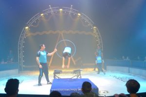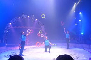 Wir nahmen erstmal Platz und die Familie Casselly stellte sich vor. Sie stellten uns eine kleine Show vor am 25.6.2018. Dann fing es so richtig an, es kam Musik und Feuer, dann fingen sie an. Um 10.15 Uhr jonglierten sie mit Tüchern. Es war toll. Dann nahmen sie Bälle und warfen sie ganz hoch, man konnte nicht mehr weggucken. Antonio stand da und Alfons fing an Ringe zu werfen und sie landeten bei Antonio an den Armen und am Kopf, sogar an einem Bein. Einer ging daneben, das war nicht schlimm. Bauchtanz war als nächstes dran. Sie tanzten und tanzten. Die Seiltänzer waren auch gut. Das Beste kam zum Schluss: Antonio sprang auf einem Trampolin über alle von der Familie und dann durften wir raus alles ausprobieren. Das hat Spaß gemacht.