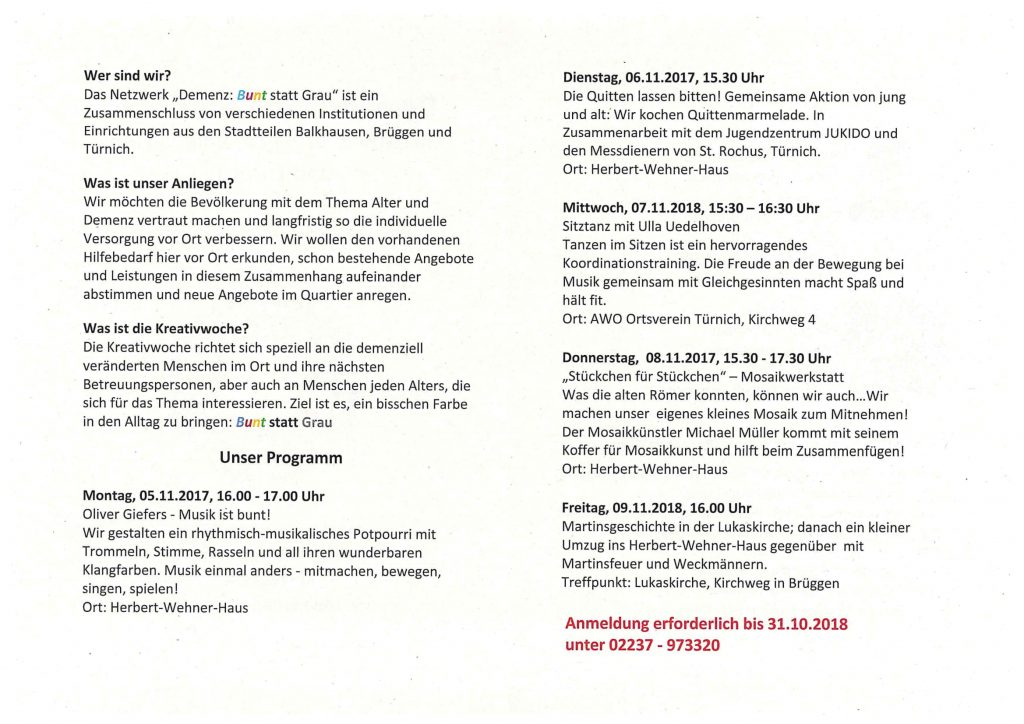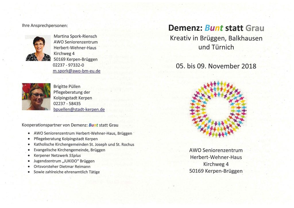 Kreativ in Brüggen, Balkhausen und Türnich 10. Oktober 2018Allgemeinschulleitung Demenz: Bunt statt Grau