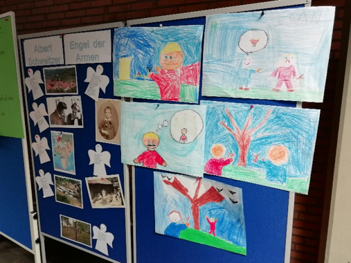 An unserem Albert-Schweitzer Tag sowie schon Tage zuvor in Projektgruppen beschäftigten sich die Kinder mit der Person Albert Schweitzers, mit seinem Leben und seinem Werk der Nächstenliebe.