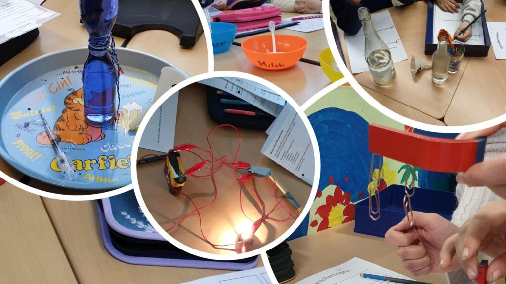 Am vergangenen Freitag fand an unserer Schule der alljährliche Experimentiertag statt. Es war ein Tag voller spannender Entdeckungen und aufregender Experimente, bei dem die Schülerinnen und Schüler die Möglichkeit hatten, in verschiedenen Projekten zu den Themen Magnetismus, Luft, Feuer, Chemie, Wärme, Schall und Elektrizität neue Erfahrungen zu machen.