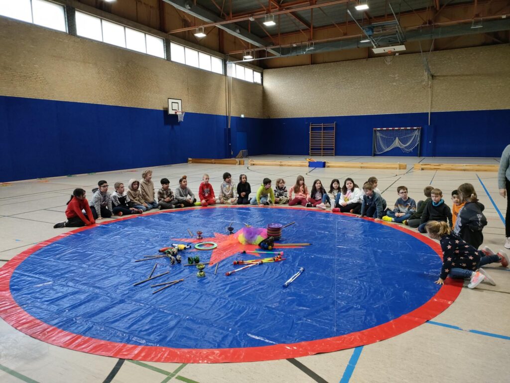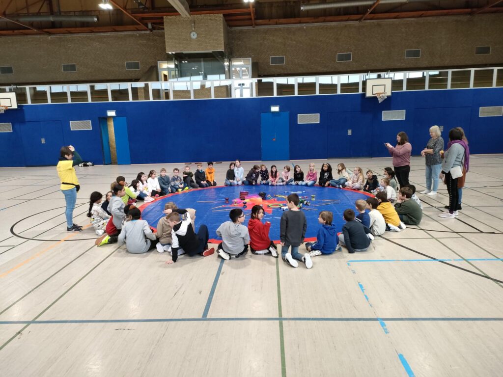 Eine schöne Abwechslung gab es letzten Mittwoch hier in unserer Schule! Das Spielmobil der Stadt Kerpen hatte seinen Besuch angekündigt und kam, wie schon im letzten Jahr, mit jeder Menge Spielmöglichkeiten vorbei! Eine Stunde lang konnte jede Klasse die verschiedenen Angebote ausprobieren, so zum Beispiel hockeyspielen und jonglieren. Die Kinder waren begeistert und wir bedanken uns auf diesem Wege recht herzlich für den Besuch!